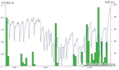 (4)初步建立了农村山区集中供水区地下水科学观测基地,为提高水工环科研水平提供长期数据支撑。在赣县夏潭村建立了大气降水、地表水、地下水及水环境等动态观测基地(图2),为南方基岩山区地下水循环转换科学研究提供长期监测数据(图3),同时为集中供水区的地下水资源可持续开发利用提供长期监测数据支撑,下一阶段计划逐步将该基地打造成为一个科研与科普一体化基地。