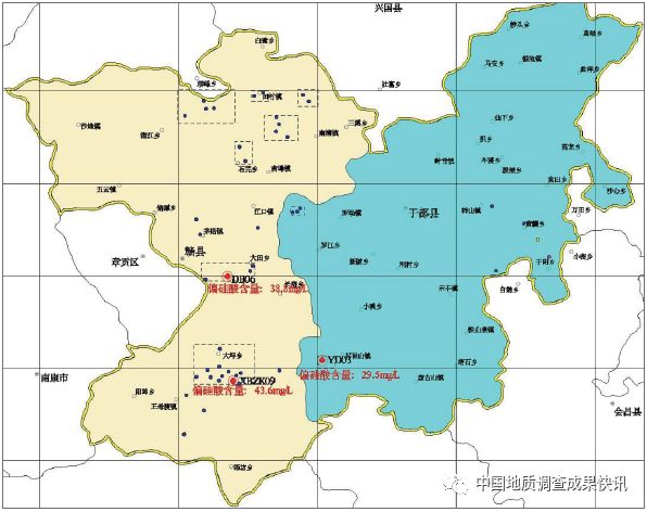 图1 赣县、于都县天然矿泉水潜力区分布图